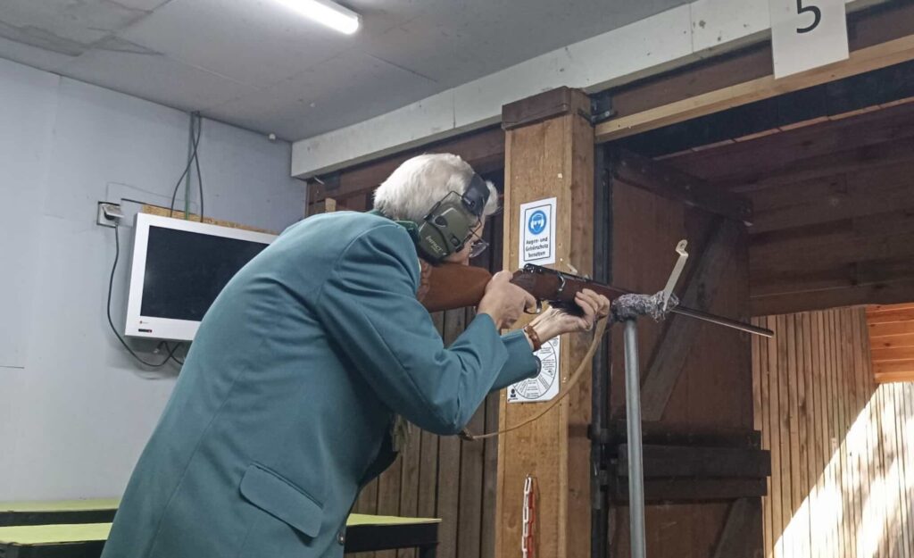 Zuerst musste er auf seinen linken Flügel verzichten, den jetzt Uwe als Abzeichen an seiner Schützenjacke trägt. Bravo! Ein Anfang war gemacht. Peter reizte der rechte Flügel und schoss das letzte Stück von ihm souverän ab. Klasse!